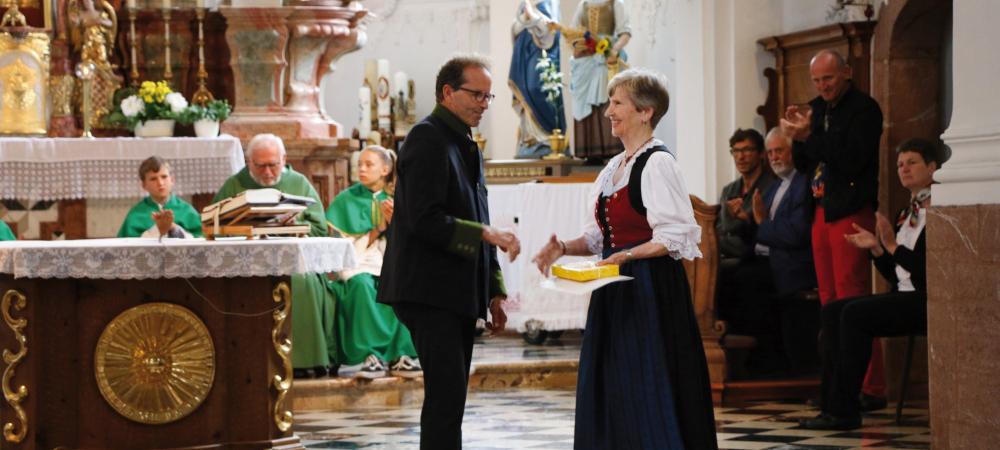 An dieser Stelle herzlichen Dank an Frau Traudl Hirschbrich. Sie war wesentlich, von Anfang an, für den Aufbau und dem Bestehen des Museums im renovierten barocken Widum verantwortlich. Die Verehrung unserer Tiroler Landesheiligen ist ihr immer ein großes Anliegen. Sie hat mit ihrem großen Kunstverständnis dem Museum immer wieder neue Impulse gegeben und mit ihrer herzlichen Art das Team der derzeit 19 ehrenamtlichen Helfer ausgezeichnet geführt und motiviert.